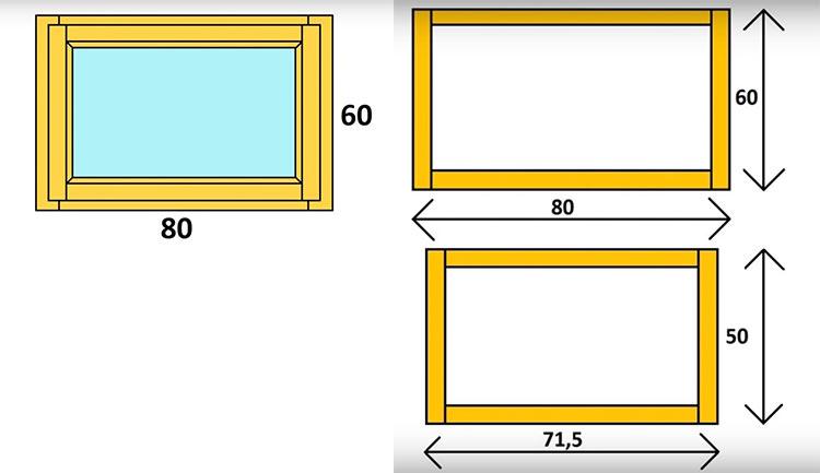 Lorsque tous les outils nécessaires sont disponibles, n'oubliez pas que vous avez besoin de plans pour une fenêtre en bois, sinon vous ne pourrez tout simplement pas commencer. Tout d'abord, vous devez décider de la taille, nous mesurons donc l'ouverture de la fenêtre, en tenant compte de la présence / absence de la boîte. S'il n'y a pas de boîte, ne vous inquiétez pas - cela ne prend pas beaucoup de temps pour le faire, mais nous vous avons fourni un dessin même d'une fenêtre typique pour une maison ou une véranda pour faciliter votre travail.