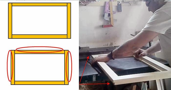 - À partir du profil dans lequel les rainures seront préfabriquées, le cadre sera assemblé, alors qu'il devrait être marqué, puis couper l'angle de 45 degrés.