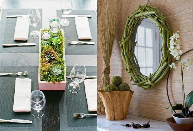 Vous pouvez acheter un florarium soigné avec des plantes inhabituelles ou fabriquer un cadre de miroir "vert". La beauté est dans les détails!