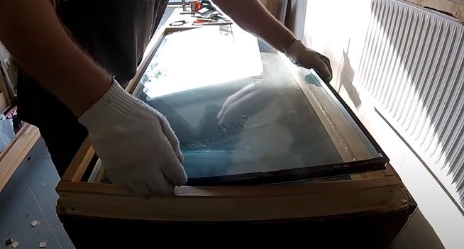 Dans le premier cas, vous devrez peut-être élargir les rainures dans les cadres, mettre du verre, puis remplir le bord avec du mastic - à peu près de la même manière que dans la fabrication d'aquariums. Dans le second cas, une unité en verre fabriquée par soi-même doit être légèrement plus petite que l'ouverture: du même centimètre que le cadre d'écartement dans le premier cas. Le sac est suffisamment épais pour bien tenir dans le cadre.