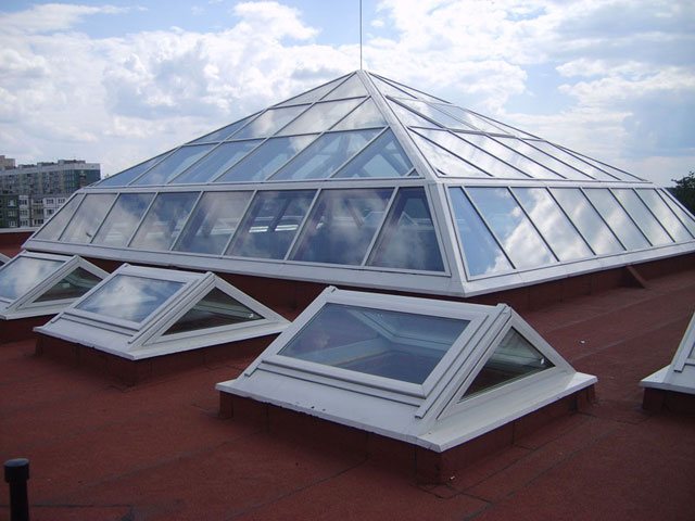 Un cadre de fenêtre, qui est généralement durable, s'insère dans la structure du chevron et est fixé aux éléments structurels du rez-de-chaussée. Pour le remplissage, ils utilisaient du verre poli simple, maintenant ils mettent de l'acrylique ou du polycarbonate.