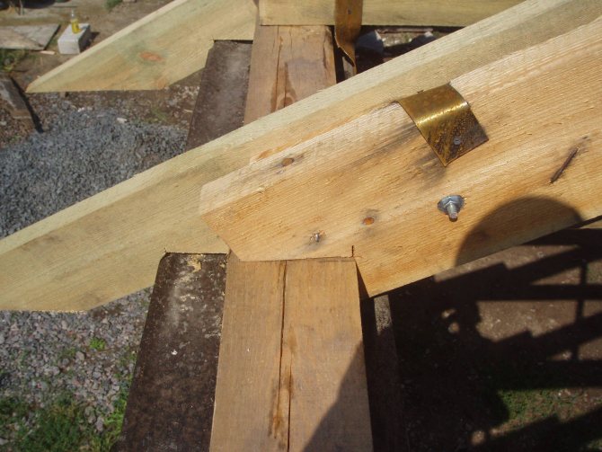 - les poutres auxiliaires ne doivent pas couper dans le corps des pieds du chevron, leurs extrémités sont fixées avec des plaques d'acier;