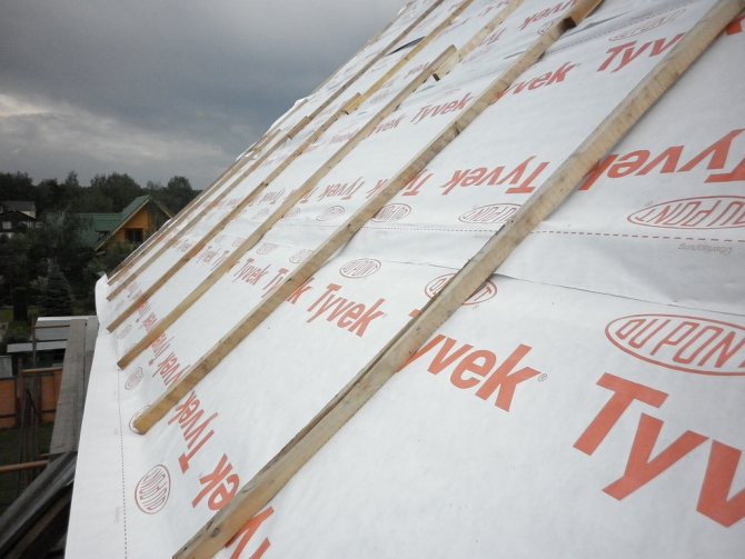 Très souvent, un film d'étanchéité est posé sous le matériau de toiture. Il protège la charpente en bois ou l'intérieur des fuites ou de la condensation. Pour les toits, sous lesquels le grenier ou d'autres pièces d'habitation seront situés, une imperméabilisation est requise. Le film d'étanchéité est fixé aux chevrons avec des contre-lattes.
