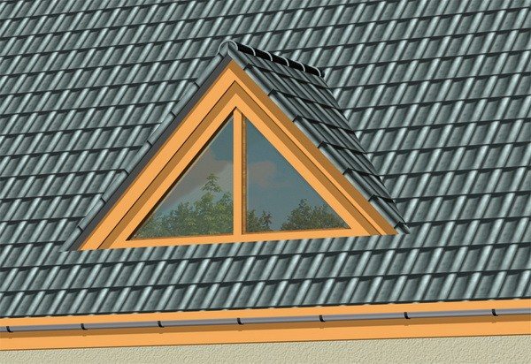 Les fenêtres de configuration triangulaire sont encadrées par des pentes à forte pente ou sont rendues à plat, des ouvertures sont placées sur le toit ou placées sur le fronton. Dans cette configuration, il n'y a pas de parois latérales, donc le problème de l'économie de matériaux, ainsi que de l'isolation et de l'étanchéité, est facilement résolu. La forme de la lumière réduit le flux de lumière dans le grenier, de sorte que les triangles sont placés moins souvent ou ils sont fabriqués plusieurs.