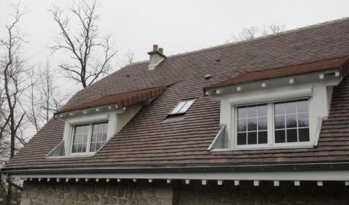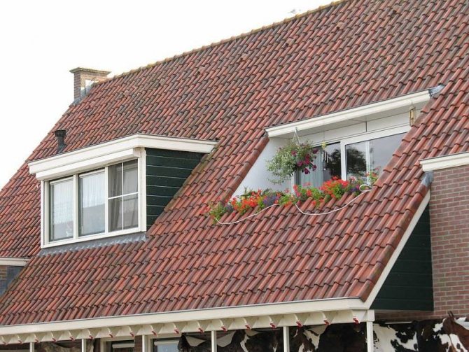 Le toit principal se prolonge dans le plancher de la lucarne et ressemble à un tout.