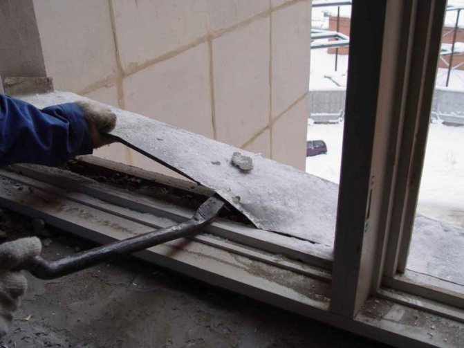 Avant de retirer l'ancienne structure de l'ouverture de la fenêtre, vous devez la couper. Une scie ordinaire convient à cet effet. Il est recommandé d'utiliser une meuleuse avec une lame diamantée ou pour couper dans le béton.