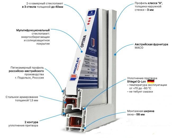 - Nombre de chambres à air. Déterminé en comptant les cavités séparées par des ponts verticaux (les horizontaux ne sont pas pris en compte). Les profilés à trois ou cinq chambres sont les plus demandés pour l'agencement dans les bâtiments résidentiels. Les trois chambres - généralement de 58 à 60 mm de large - conviennent aux régions à climat doux, car un nombre donné de chambres ne sont pas capables de retenir la chaleur à l'intérieur d'une pièce à des températures inférieures à zéro à long terme. Cependant, en raison du faible coût relatif, des fenêtres avec un tel profil sont installées sur les murs situés du côté sud ou le vitrage des loggias est réalisé. Cinq chambres - à partir de 70 mm de large - idéales pour un climat rigoureux, car elles réduisent considérablement les pertes de chaleur ;
