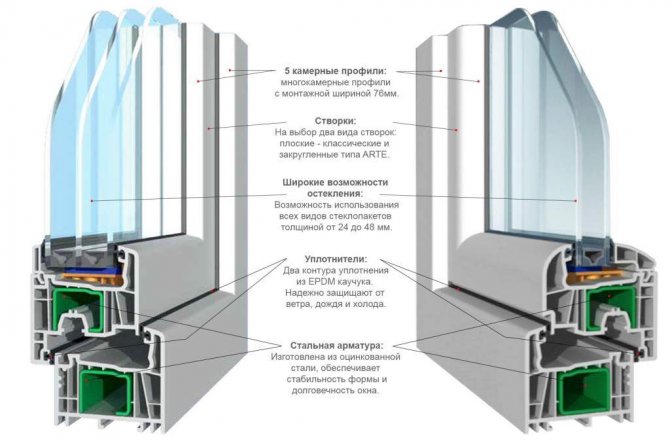 Photo : Les propriétés des fenêtres dépendent en grande partie des composants qui ont été utilisés dans la fabrication : profilé de 60 mm, 70 mm ou 80 mm ; verre ordinaire, i-glass ou multifonctionnel; Double vitrage 1 chambre ou 2 chambres, avec ou sans argon