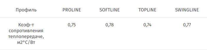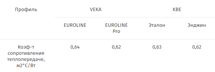 - En termes de coefficient de transfert de chaleur entre les fenêtres à 3 chambres, le moteur et l'étalon sont similaires à l'Euroline: le moteur a un coefficient de transfert de chaleur de 0,62."Etalon" - 0,64.
