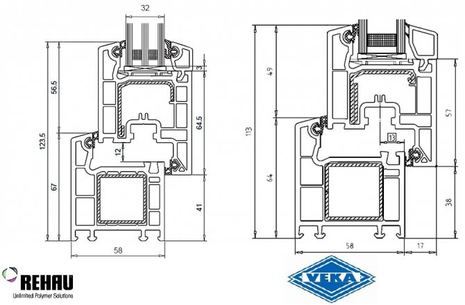 La qualité de la construction dépend de la largeur de montage du profilé. Veka fabrique des modifications d'une largeur de 60 à 90 mm avec une épaisseur de paroi de 3 mm. KBE - 58 à 88 mm; 2,5 mm est l'épaisseur du plastique extérieur.