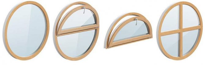 Les cadres et les châssis en bois massif épissé conservent bien leur forme. Les technologies modernes d'assemblage, de meulage et de finition permettent de bien masquer les joints, de sorte que les fenêtres rondes en bois ressemblent à une structure monobloc. Les avantages de tels modèles sont bien connus: