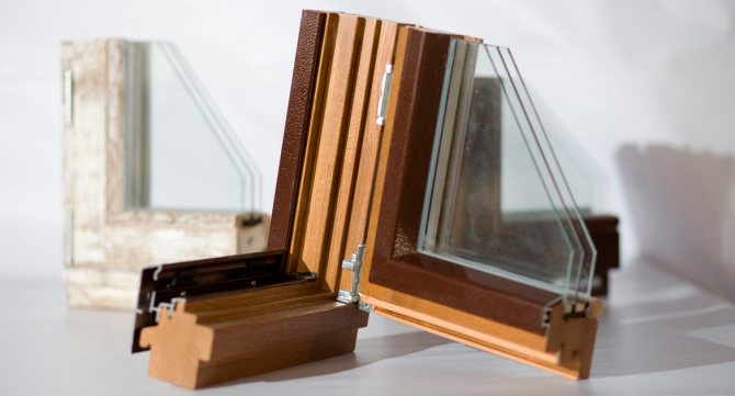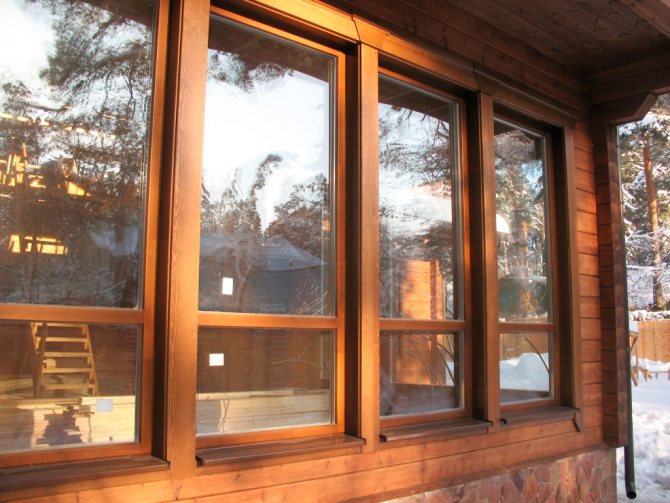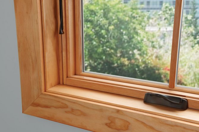 - Fenêtre à double vitrage. Occupe la zone de la fenêtre principale. Il est monté soit dans l'ouvrant, soit directement dans le cadre (dans les éléments de store). Dans les structures en bois, en règle générale, des fenêtres à double vitrage de haute qualité sont utilisées, qui offrent un niveau élevé d'isolation thermique et acoustique.