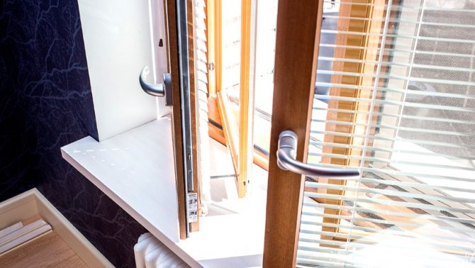 - coloration et vernissage. À l'aide d'un vernis, vous pouvez conserver la couleur et la texture naturelles du bois, si nécessaire. Si vous souhaitez donner à l'arbre une nuance spéciale, vous pouvez utiliser des peintures translucides et opaques, vous permettant d'obtenir la couleur souhaitée tout en conservant la texture et en adaptant la fenêtre à l'intérieur;
