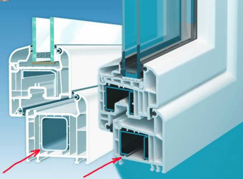 De telles fenêtres sont constituées d'un profilé à base de polychlorure de vinyle, renforcé d'un cadre métallique. Les produits en plastique ordinaires peuvent changer de géométrie en raison des changements de chaleur.