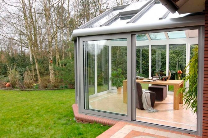 Parmi les matériaux des profilés pour fenêtres coulissantes, l'aluminium est particulièrement populaire. Il est le plus populaire pour les petites formes architecturales, y compris un belvédère et une véranda. De tels systèmes coulissants conviennent également aux pièces vitrées qui seront utilisées tout au long de l'année, à condition qu'un chauffage supplémentaire soit fourni. Cela crée une température confortable pour rester à l'intérieur.