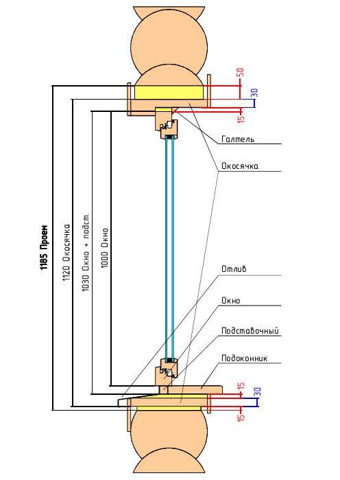 Rappelons que dans les maisons en bois, la mesure de l'ouverture de la fenêtre est toujours effectuée en tenant compte des dimensions du cadre du caisson, ce qui est nécessaire pour stabiliser les dimensions de la fenêtre dans un cadre en bois (pour plus de détails sur les types de caisson et comment choisir son design, lisez d'autres articles sur notre site Internet).