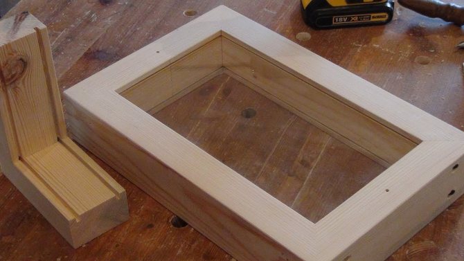 Lorsque toutes les pièces principales sont réalisées, il faut procéder directement à l'assemblage du cadre. Pour cela, les planches sont sciées à un angle de 45 degrés et, à l'aide du profilé, une connexion tenon-rainure est formée, elle est renforcée par des vis autotaraudeuses.