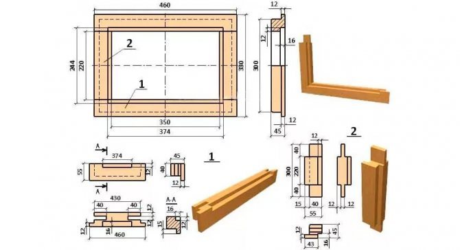- Les châssis ouvrants sont en bois plus mince et sont fixés au cadre principal au moyen de charnières articulées. C'est sur ce châssis que la poignée devra être fixée, et sur la partie opposée du cadre, sélectionnez la rainure appropriée pour la languette du loquet.