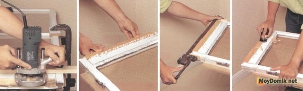 - remplacement. La partie préparée du cadre est installée à l'endroit souhaité, fixée avec de la colle et serrée avec des pinces. Après 24 heures, les pinces sont retirées ;