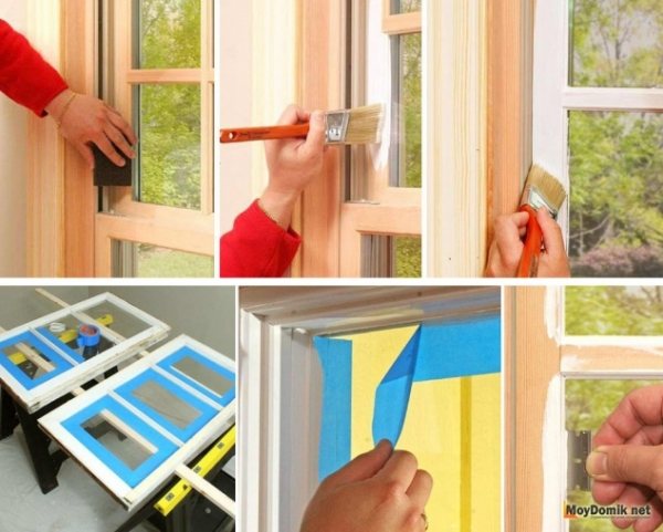 La finition de teinture pour bois est finie avec le vernissage. Les châssis de fenêtres secs sont recouverts de vernis transparent (il est préférable d'utiliser du vernis acrylique pour le bois, brillant ou mat).