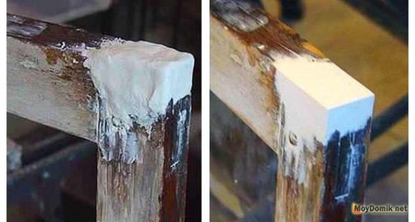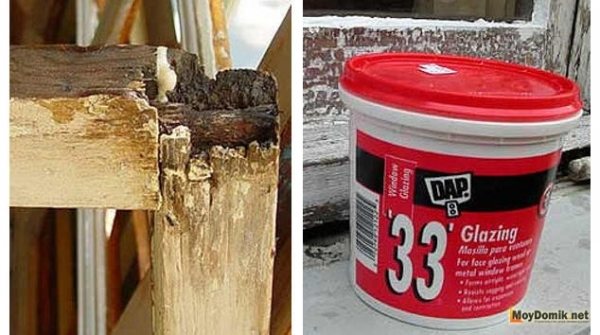 Si un fragment du cadre a pourri, il peut être remplacé ou restauré. Si le remplacement n'est pas prévu, la restauration demeure. Pour ce faire, vous aurez besoin d'un mastic époxy pour bois (de la fibre de verre peut être incluse dans la composition, ce qui augmentera considérablement la rigidité de la structure).