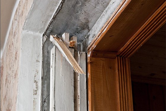 Tout d'abord, si la maison est en pierre, nous abattons les pentes et le plâtre le long du haut de l'ouverture de la fenêtre. Objectif: savoir s'il y a un linteau dans l'ouverture, ou si une section du mur porteur se trouve juste sur le boîtier de la fenêtre; c'est un "hack" de construction courant.