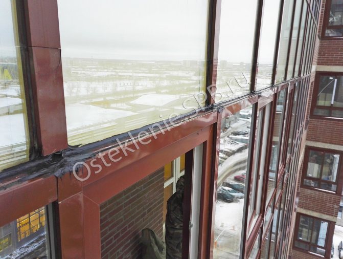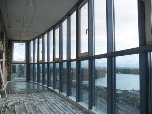 Le collage d'une seule vitre avec un film isolant thermique (économe en énergie) de haute qualité peut réduire les pertes de chaleur en hiver jusqu'à 30%. Mais, bien entendu, il ne peut pas remplacer complètement le deuxième ou le troisième circuit de vitrage à l'aide d'un film. Certains artisans retirent complètement les cadres de fenêtre du profilé en aluminium, ne laissant que les barres transversales-guides, et à leur place, ils montent des fenêtres en profilé PVC avec double ou triple vitrage. Dans ce cas, l'apparence de la façade du bâtiment en souffre immédiatement. Étant donné que le profilé PVC est épais et visuellement très différent du profilé de fenêtre en aluminium. Un tel remplacement n'est pas acceptable si le balcon est semi-circulaire.