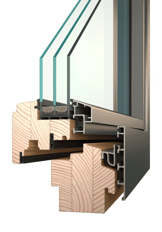 - profilé en aluminium avec des garnitures en bois placées à l'intérieur de la fenêtre;