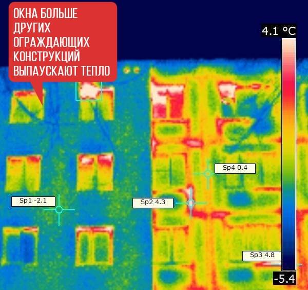 - Bien que la troisième méthode soit plus coûteuse, elle peut aider à identifier les problèmes non seulement avec les fenêtres - l'imagerie thermique. À l'aide d'un équipement spécial, les zones de fuite de chaleur peuvent être déterminées. Un exemple de cliché est présenté ci-dessous.