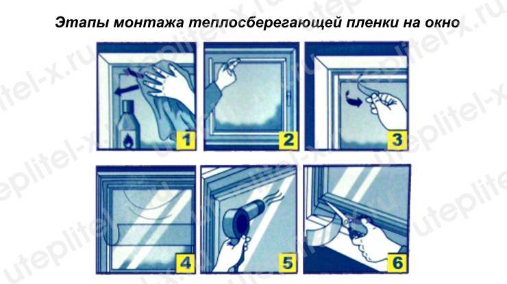 L'installation du film rétractable est également mieux faite ensemble. Du ruban adhésif double face est collé le long du périmètre du cadre de la fenêtre, un flan de 2 cm plus grand que le verre est découpé dans le film et collé au ruban sur tout le périmètre. Tout d'abord, le haut, tandis que l'assistant doit tirer le bord inférieur du film par les coins, empêchant une adhérence prématurée du film. Les rides et plis qui en résultent ne sont pas effrayants.