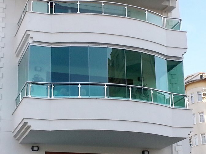 Cette solution diffère de toutes les options de vitrage en ce que la structure n'est représentée que par des guides horizontaux, du verre et des ferrures. Le principal inconvénient est l'inadaptation à une loggia de vitraux chauds.