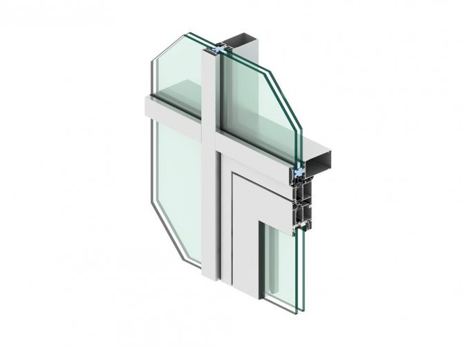 - Faux vitrage. Cette solution est applicable pour une chambre froide et une zone calme, car les fenêtres à double vitrage sont utilisées simples et le profilé est en aluminium léger.