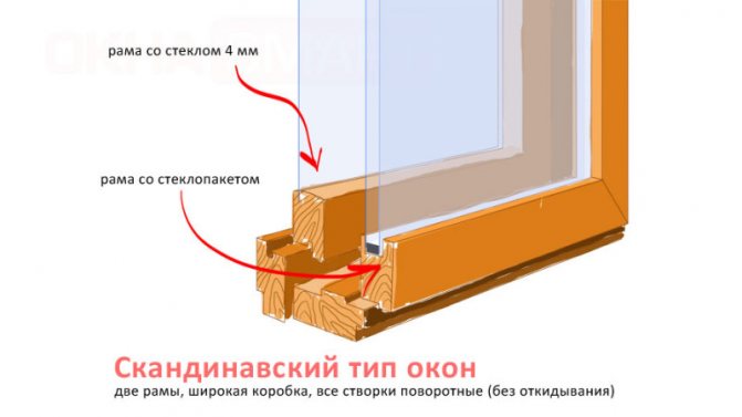 Pour assurer un degré d'isolation thermique suffisant, des fenêtres en bois constituées de deux cadres, séparés par une large lame d'air, suffisent. Le fait est que le principal facteur de protection contre la perte de chaleur n'est pas l'épaisseur et le nombre de verres, mais la largeur totale de l'entrefer entre eux.