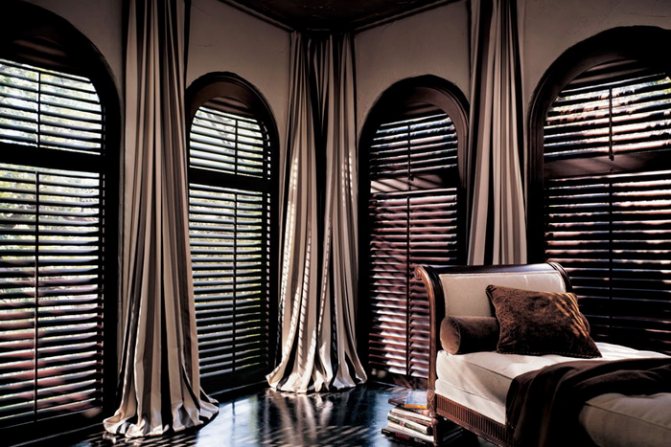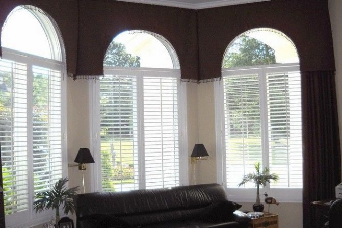 Photo: les rideaux pour arcs ne doivent pas se cacher, mais souligner leur forme Selon l'intérieur, des rideaux ou des stores sont choisis pour les fenêtres cintrées.
