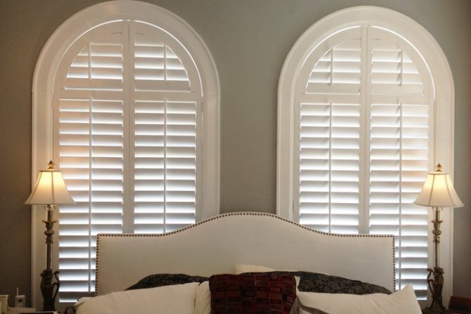 Très souvent, les structures cintrées sont équipées de plusieurs châssis dont le nombre dépend de la taille des fenêtres. Il est préférable de ne pas placer plus de deux châssis sur une petite feuille de fenêtre, car cela réduira la transmission de la lumière et la composante géométrique de la fenêtre sera violée. Veuillez noter que les ouvertures avec plusieurs volets peuvent réduire visuellement l'espace.