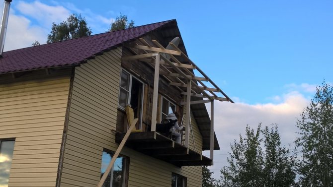 - L '«extension» qui en résulte est équipée d'un toit. Pour un tel balcon à ossature, vous devez utiliser le même matériau avec lequel le toit de la maison elle-même a été gainé.