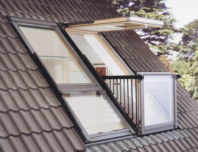 Une ouverture est simplement aménagée sous une telle structure dans la pente du grenier. La même fenêtre de balcon est achetée séparément. Lors de l'élaboration de dessins dans ce cas, vous devez tout d'abord calculer correctement la distance entre les chevrons. Le pas entre eux doit être égal à la largeur de la fenêtre.