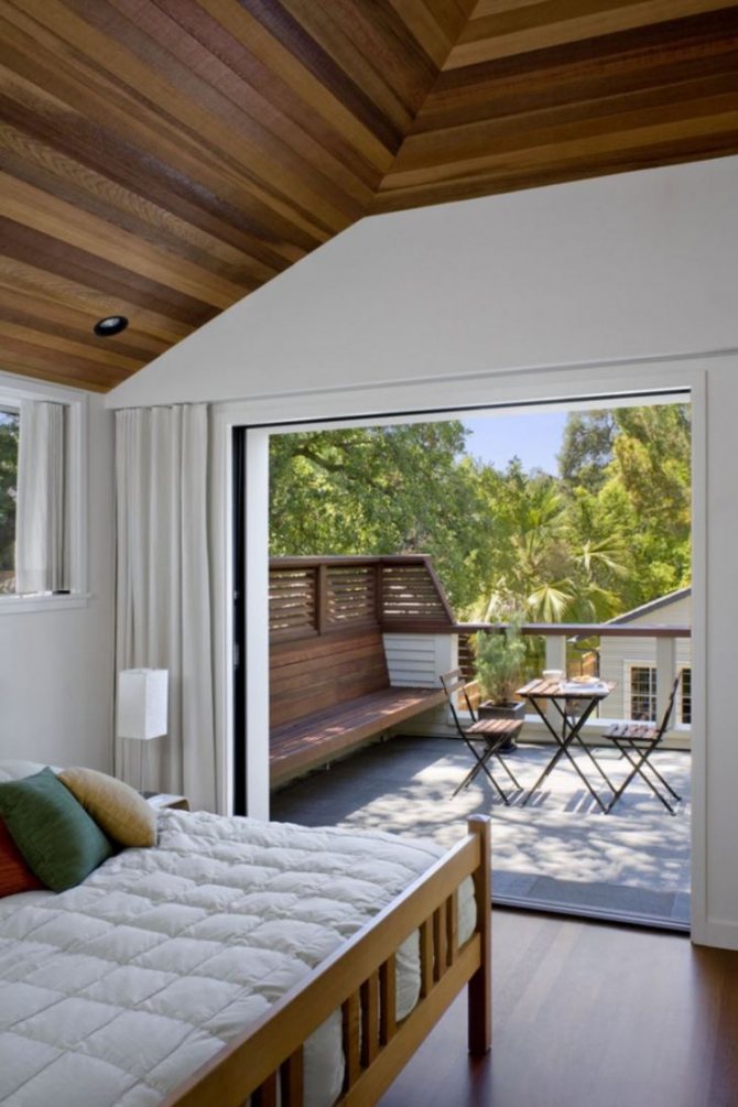 Ne peut être fait que lors de la construction de la maison elle-même. Un espace ouvert est laissé dans la zone du toit - une ouverture. À cet endroit, un mur est en cours de construction, où il y aura une sortie sur le balcon. Cette construction n'a pas de fenêtres. Cependant, vous pouvez faire une porte en verre qui laissera la lumière entrer dans la pièce.