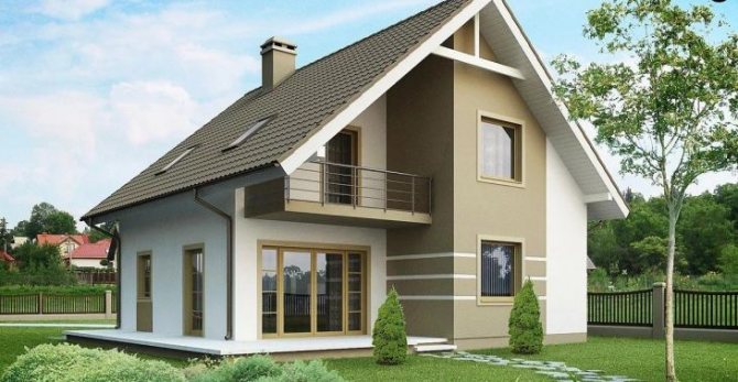 Les projets de maisons à un étage avec un grenier et une loggia dans la partie du toit sont également très populaires auprès des propriétaires de maisons de campagne. Le plus souvent, une structure de balcon encastrée est disposée sur la pente. Un tel projet peut également être téléchargé sur Internet ou compilé par vous-même.
