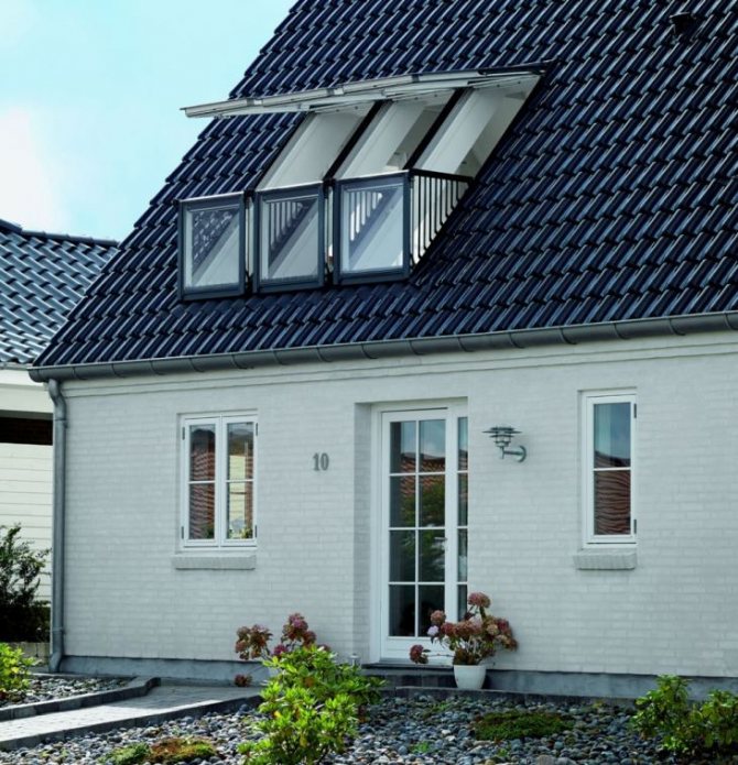 Le plus souvent, une maison de campagne est équipée d'un tel design. Mais parfois, cette option est également utilisée dans les bâtiments résidentiels de banlieue.Une maison avec un grenier et une telle fenêtre est très belle et moderne.