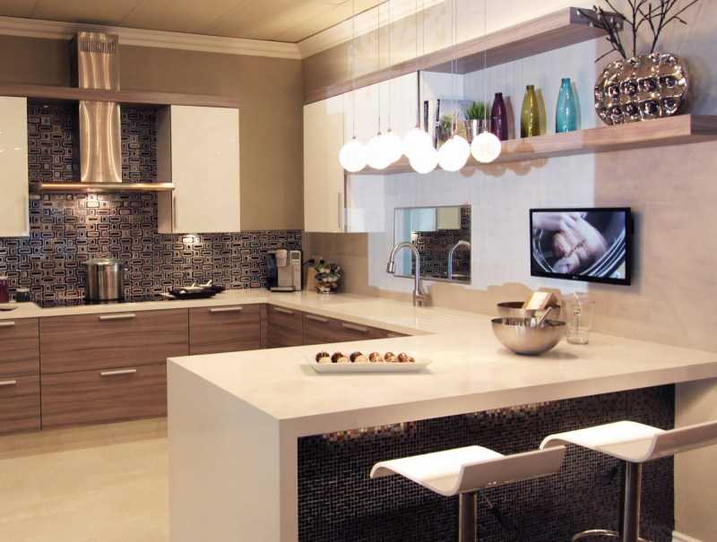 Le comptoir du bar apporte une nouveauté lumineuse à l'intérieur. Considérez les options pour placer le bar près de la fenêtre de la cuisine.
