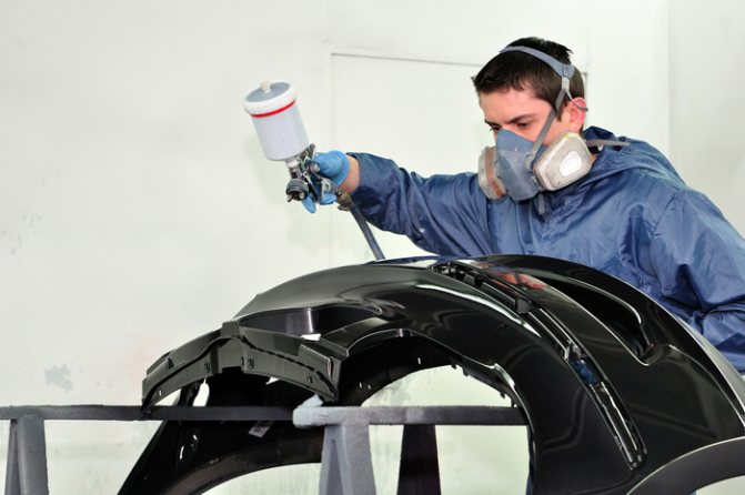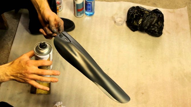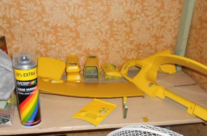 Peinture avec émail universel ou acrylique créé pour le plastique. Habituellement, des travaux délicats sont effectués de cette manière ou des pièces ne nécessitant pas d'attention particulière sont peintes. La raison en est un temps de séchage plus long, pendant lequel la surface collante peut se salir.