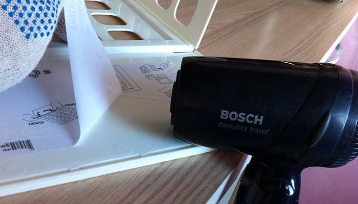 Chauffer la colle avec un sèche-cheveux