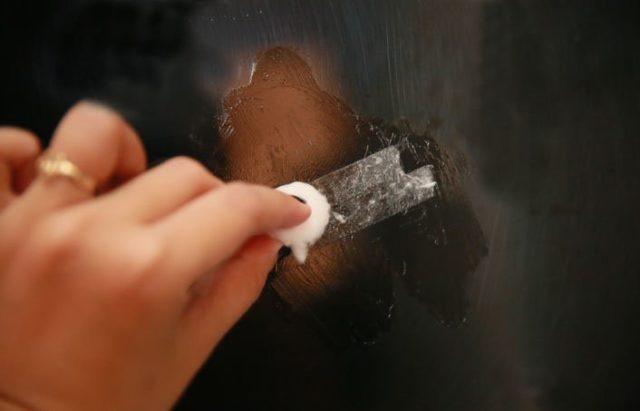 Si la colle ne s'est pas retirée même après avoir été essuyée avec de l'acétone, vous pouvez utiliser des solvants «doux» comme l'essence ou le white spirit. Si le choix s'est porté sur l'essence, il est conseillé d'utiliser une forme raffinée, par exemple celle qui est utilisée pour remplir les briquets. Le produit est également appliqué sur le cadre et lavé après un certain temps, et les marques froides sont éliminées avec une éponge dure ou un grattoir. Pour être rassuré, avant d'utiliser de l'essence ou du white spirit, il est vérifié sur un petit morceau de plastique pour vitre.