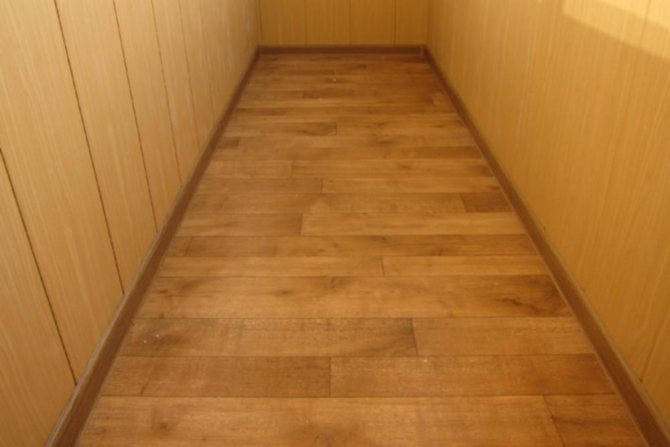 Alternativement, vous pouvez envisager un parquet stratifié ou en bois ou une planche de bois poncée comme revêtement de sol sur le balcon. Les planchers en bois sont généralement vernis ou peints. Il a un énorme avantage par rapport aux autres matériaux - marcher sur une surface en bois est chaud et confortable et ne nuit pas à votre santé. Mais il y a aussi un inconvénient important: les planches sèchent avec le temps à cause du froid et de l'humidité.