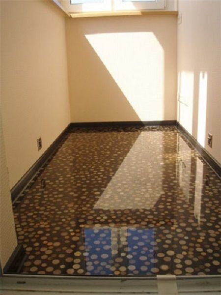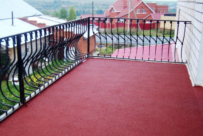 Si vous décidez d'utiliser une chape en béton comme revêtement de sol principal sur le balcon, il sera nécessaire de la peindre avec un composé hydrofuge pour une utilisation en extérieur. Cela donnera aux sols un aspect plus esthétique et empêchera la destruction prématurée de la chape sous l'influence de facteurs naturels.