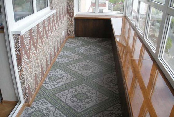 Un autre moyen bon et budgétaire est le tapis. Il est agréable au toucher, chaleureux, confortable - tout simplement parfait pour une zone de loisirs ou un bureau. Mais, encore une fois, cette méthode ne convient que si le balcon est bien isolé et protégé de manière fiable de l'humidité.