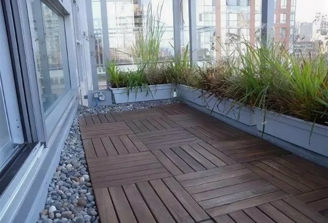 Dans une large gamme de dalles en plastique ou en caoutchouc, chaque propriétaire pourra choisir une option qui lui convient - à la fois pour une loggia ouverte et pour une version chauffée.
