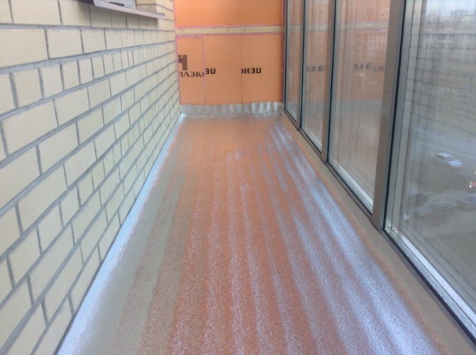Une version chaude de la chape est utilisée pour les loggias avec des structures isolées. La dalle est d'abord recouverte de mousse dense ou de dalle minérale, et du mortier de ciment est appliqué sur le dessus de l'isolant. Ne faites pas une couche de béton trop épaisse: le fait est que chaque dalle de balcon a sa propre limite de charge maximale.
