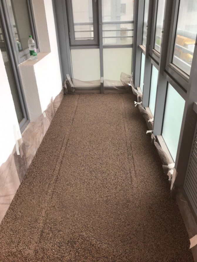 Avant de poser le tapis, vous devez faire une chape parfaitement uniforme sur la dalle du balcon. Étant donné que le tapis est assez doux, toute irrégularité du béton sera ressentie à travers celui-ci.